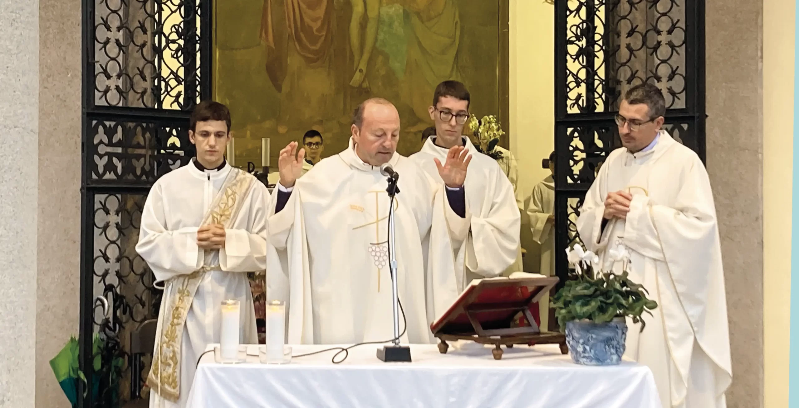 Ognissanti è stata la prima solennità che il nostro don Paolo ha vissuto dopo la sua ordinazione diaconale. Sia l’altare maggiore che la prima altare laterale alla destra del presbiterio, dedicata appunto a tutti i Santi, erano ornate con numerose reliquie, segno della presenza viva dei Santi. Il novello diacono ha proposto l’omelia alla solenne celebrazione delle ore 9.45, presieduta da don Davide, partendo da una domanda: Come si vive una vita Santa? Le istruzioni sono contenute nel Vangelo del giorno (Matteo 5, 1-12), che ha proposto il discorso delle beatitudini che Gesù recita di fronte alla folla. Le beatitudini sono situazioni di vita estremamente concrete: chi non ha mai desiderato la giustizia? Chi non ha mai pianto? Chi non si è mai chinato verso i poveri? Santità è non fuggire da questi episodi, ma affrontare la quotidianità della propria esistenza, poiché i Santi sono tali già su questa Terra: certamente non è un’impresa facile, ma ciascuno di noi possiede tutti gli strumenti idonei per riuscirci. I Santi sono come la foschia mattutina che ci permette di guardare il Sole: avvicinano la suprema esperienza di Cristo alle povertà della nostra realtà. Non siamo chiamati a copiare gli eventi che hanno caratterizzato la vita di un Santo, ma dobbiamo imitarne lo stile, poiché ognuno può diventare Santo a modo suo.