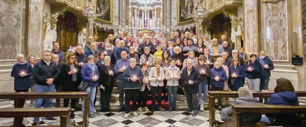 La giornata si è conclusa con la solenne S. Messa delle ore 20.30, in ricordo di tutti i defunti della nostra comunità che ci hanno lasciato dal novembre 2021 all’ottobre 2022. Ciascuna famiglia colpita da un lutto nell’ultimo anno è stata invitata personalmente alla celebrazione con una lettera recapitata a casa. Dopo il Vangelo proclamato da don Paolo, don Giuseppe ha proposto una toccante poesia (riportata integralmente di seguito), composta dalla teologa Adriana Zarri nel 2010, quando sentiva incombere il peso della morte. Ma, colma di grazia per una vita vissuta in pienezza e fiduciosa di essere accolta nell’abbraccio del Signore, l’autrice respinge con forza la paura del trapasso, a tal punto da andare incontro alla morte esclamando: “Vieni!”. Poi, la lettura di tutti i nomi dei settantanove defunti dell’anno, ciascuno accompagnato dal profondo suono della campana, per sottolineare l’eccezionalità di ogni singola esperienza di vita. Al termine della celebrazione, durante il canto finale, il parroco, aiutato da don Dario e don Davide, ha consegnato ad un rappresentante di ogni famiglia un piccolo cero bianco, accompagnato da una pergamena con i versi di Adriana Zarri. Le candele erano state accese da alcuni chierichetti durante la lettura dei nomi, attingendo la fiamma dal cero pasquale, simbolo della speranza di resurrezione.