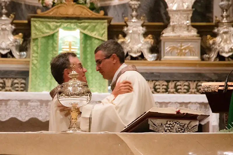 La celebrazione è terminata, qualche fedele ha gli occhi lucidi, qualcuno si asciuga il viso perché – si sa – ogni cambiamento porta con sé fatica e qualche lacrima, non solo per i sacerdoti ma anche per la comunità. Non mancano certo, anche da parte nostra, sentimenti di gratitudine per questi due nostri sacerdoti che, in modi differenti, hanno servito il Signore con passione e dedizione, ricordandoci sempre che “si diventa preti per essere una presenza. Si diventa preti per rendere l’invisibile visibile. Come accade sull’altare. Come accade quando si ascolta, senza pretese, senza giudicare. Come quando si stringe una mano per infondere forza. Come quando si tiene in braccio un bambino che piange, o come si accarezza la fronte di uno che muore. Fare il prete non è un mestiere, è un modo inutile di amare. Inutile come ogni amore. Inutile come l’aria”. (don Luigi Maria Epicoco).