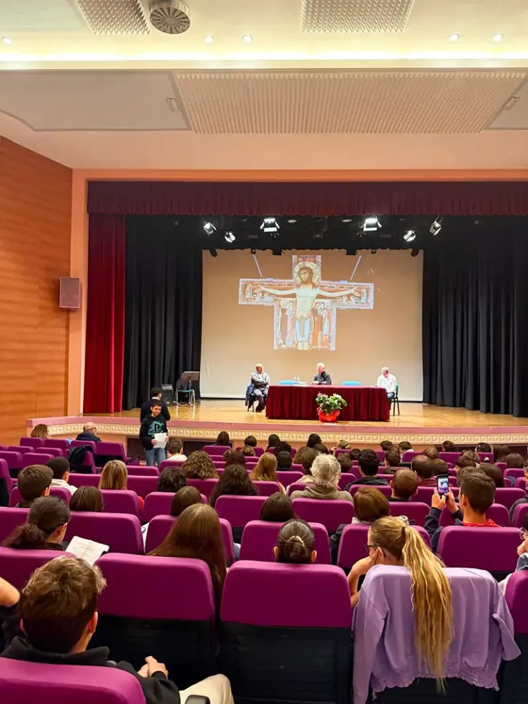 Al cineteatro di Urgnano, il Vescovo ha incontrato gli adolescenti. Vedendosi di fronte i futuri della nostra Fraternità, ha parlato con un linguaggio a loro vicino, per entrare nei loro cuori e infondere la giusta dose di speranza.